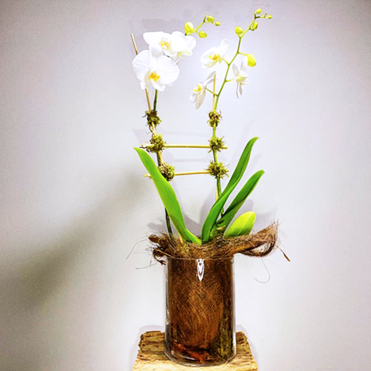 Indulge in the beauty of nature with our exquisite orchid plant presentations. Each arrangement features vibrant orchids nestled in a sleek clear glass container, elegantly lined with preserved lotus leaves. Chic and timeless, these orchid displays bring a touch of sophistication to any space.